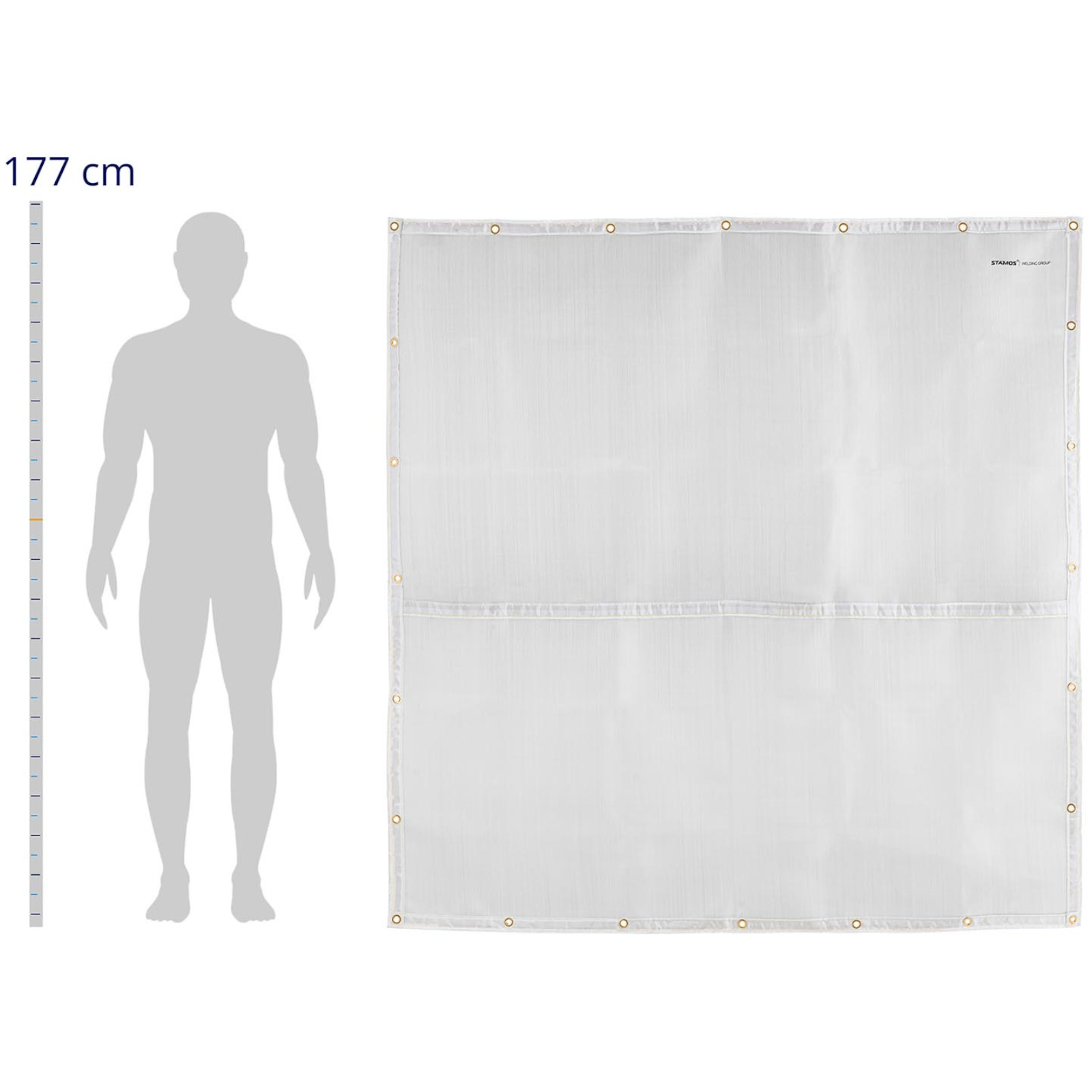 Koc spawalniczy marki Stamos Welding Group to obszerna płachta wykonana z włókna szklanego, łapie iskry, płomienie oraz odpryski żużlu. Idealnie nadaje się do wszelkich prac wymagających użycia wysokiej temperatury. Rozmiar 176 x 177 cm pozwala oddzielić od siebie poszczególne stanowiska pracy. Koc wytrzyma temperatury do 1000°C bez topienia. Przez krótki czas, około 10 s zniesie nawet 1700°C. Na krawędziach koca znajdują się mosiężne oczka, które służą do łatwego zawieszenia.
