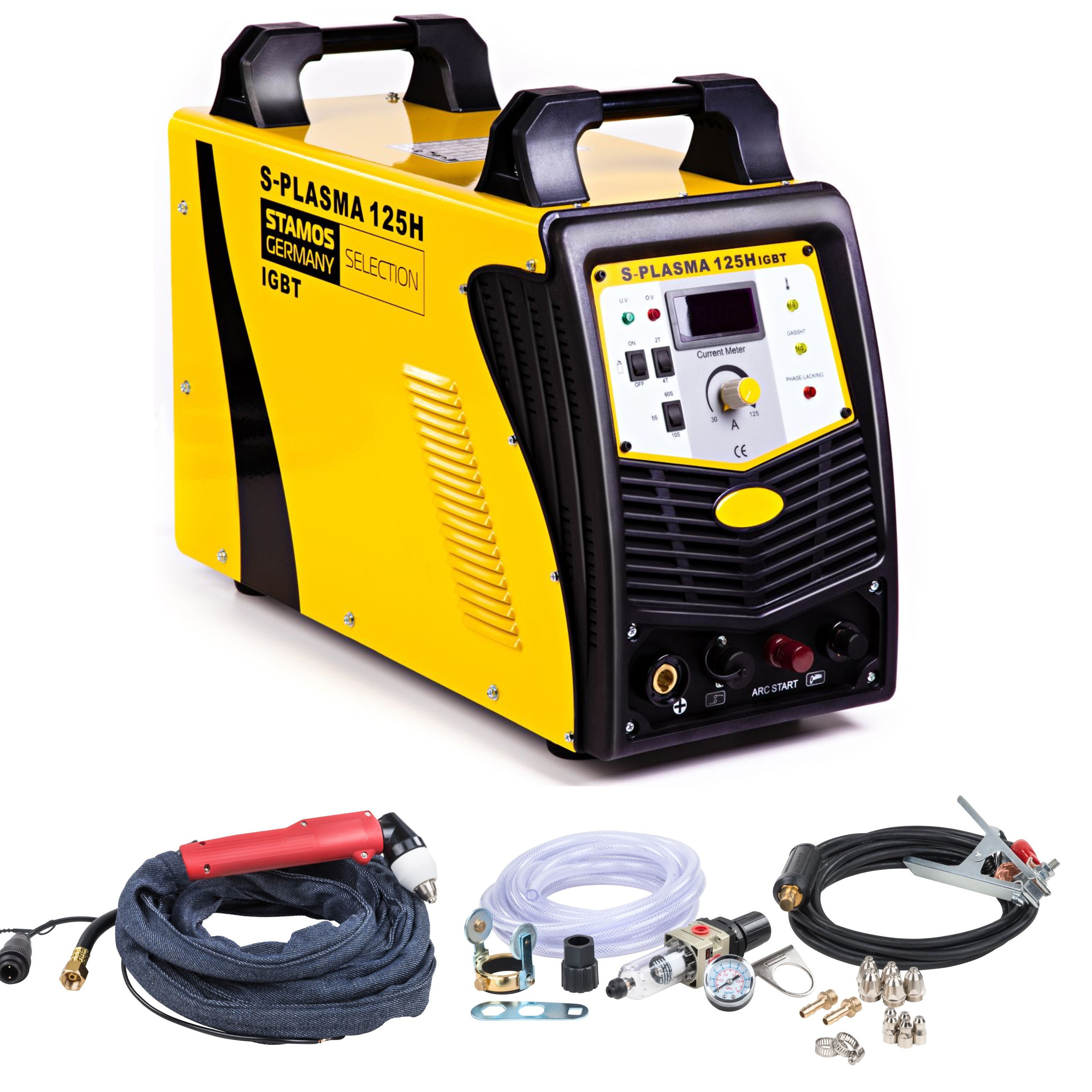 • Cięcie plazmą – dzięki natężeniu prądu do 125 A, urządzenie bezproblemowo przetnie takie metale jak, żelazo, stal nierdzewna, żeliwo, miedź, czy aluminium. Ciśnienie powietrza jest regulowane bezstopniowo, co pozwala na precyzyjną kontrolę strumienia plazmy. Nieprzepalanie materiału, niewielka ilość zniekształceń oraz gładka szczelina cięcia to część zalet, wynikających z użycia wielofunkcyjnego urządzenia Stamos Germany.